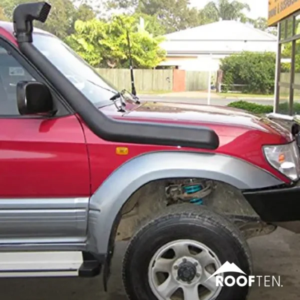 Este sistema de admisión de aire permite que el motor respire aire más limpio y fresco, lo cual puede ayudar a mantener un rendimiento más estable y prolongar la vida útil del filtro de aire cuando te enfrentas a terrenos polvorientos, cruces de agua o rutas difíciles. Fabricado con materiales resistentes a los rayos UV y al desgaste, el snorkel está diseñado para integrarse de forma segura y estética con la carrocería del Toyota Prado, ofreciendo además una ventaja práctica para aventuras, viajes y expediciones 4×4.